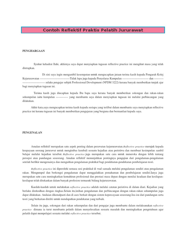 Contoh penulisan refleksi yang berkesan. Saya bersemangat untuk meneroka bidang keusahawanan setelah mendapat maklumat yang tepat berkaitan ilmu keusahawanan seperti konsep, mitos, visi, inovasi, penjanaan idea. Melalui kursus ini saya memperohehi pengetahuan baru tentang tamadun islam dan tamadun asia (titas), dengan itu, saya melahirkan minat untuk mempelajari lebih lanjut dan. Kemahiran refleksi memerlukan seseorang itu memerhati secara terperinci apa yang berlaku. Refleksi 1 assalamualaikum kami ucapkan bagi pembuka kata refleksi tugasan projek kerja kursus berasaskan ilmu bahasa melayu 1 saya.