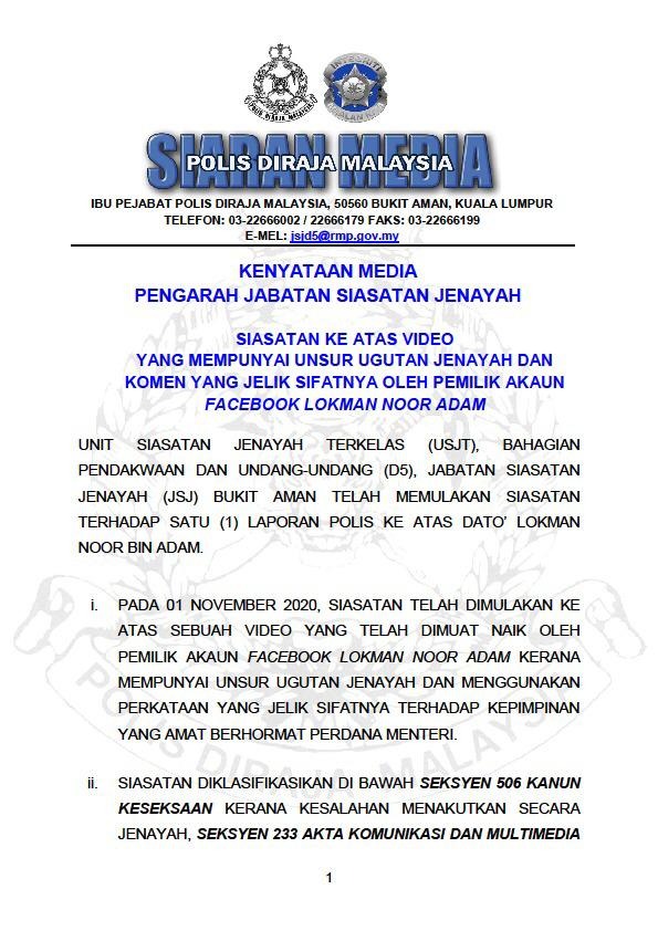 Related : Seksyen 506 Kanun Keseksaan Ugutan Jenayah / Terdahulu, timbalan pengarah (siasatan dan perundangan) jabatan siasatan jenayah (jsj) bukit aman..