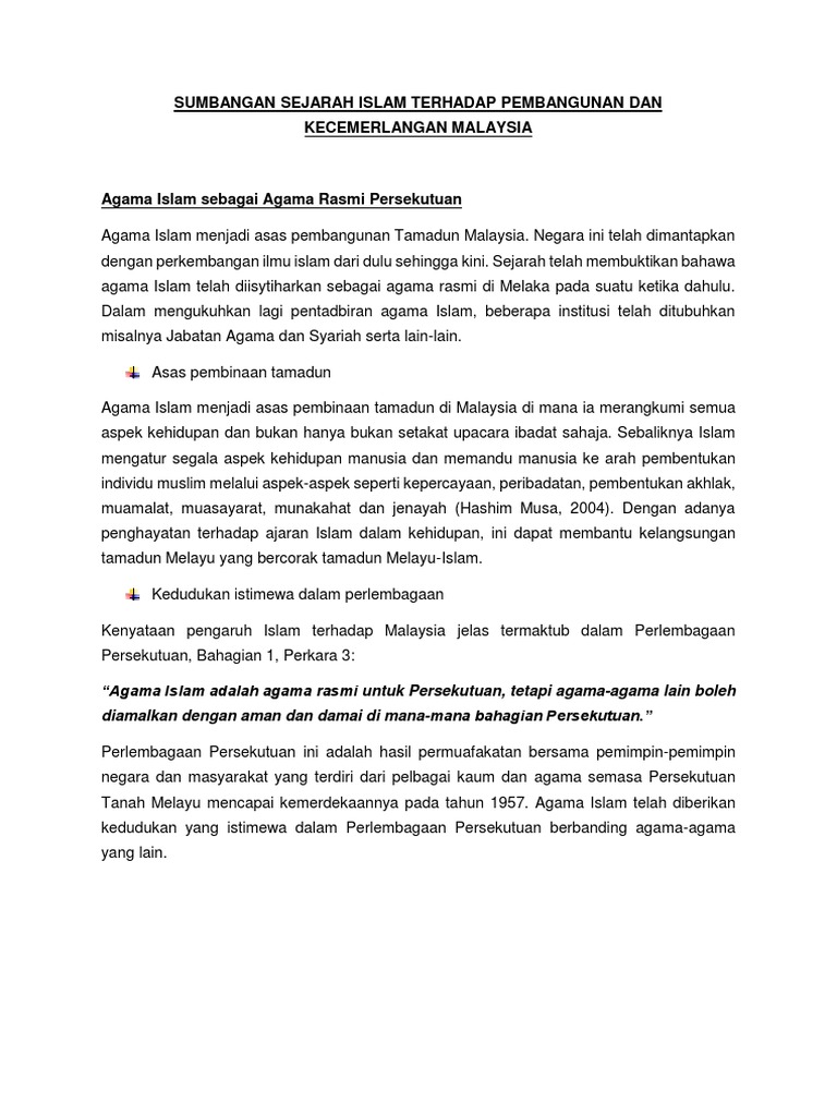 Amaran Bekas Ketua Hakim Kesan Ubah Kedudukan Islam Sebagai Agama Rasmi Minda Rakyat from 4.bp.blogspot.com Ini sekaligus membolehkan kerajaan pemerintah mengisytiharkan bahawa malaysia adalah sebuah negara islam. Berdasarkan kepada perkara 3 (1) ini, menunjukkan bahawa perlembagaan persekutuan mengiktiraf islam sebagai agama rasmi di malaysia. Perkara paling utama dalam menunjukkan identiti negara islam malaysia adalah perkara 3 (1) perlembagaan persekutuan yang menyebut islam adalah agama bagi persekutuan. Agama islam telah dijadikan sebagai agama dan pegangan rasmi negara ini menurut akidah ahli sunnah waljama'ah dengan menghayati mazhab syafie sebagai cara hidup sepanjang hayat. Jawapan teresa kok ini terpancul setelah diajukan soalan daripada pihak peguam dato zaini utusan dalam kes saman teresa kok ke atas dato zaini ekoran artikel cuit cuit dato zaini pada tahun 2010. Berasaskan juga kepada faktor sejarah dan politik kaum melayu diberikan beberapa hak Kerajaan telah meninggikan martabat islam dengan melantik seorang menteri penuh di jabatan perdana menteri bagi. Islam mengajar seseorang untuk menjaga hak manusia sama ada secara individu atau berkelompok.